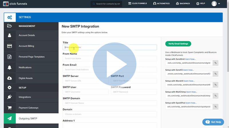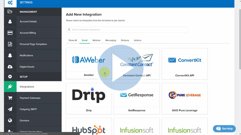 Watch step-by-step as we navigate through the ClickFunnels system and add a new integration. In this example we'll use GetReponse, however you can use this process to add any supported app.