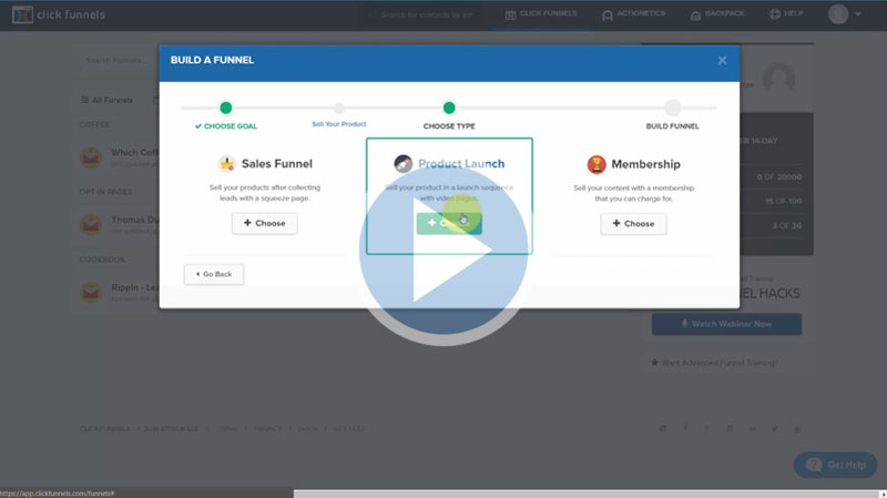 There are literally 100s of sales funnels you can create and variations of each one. This can become overwhelming for the beginner especially with so many pre-made templates to choose from. So watch carefully as we help you create your first site.