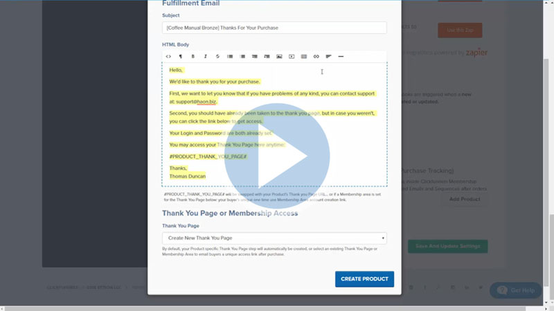 In this lesson we'll show you how to define the 'thank you' porduct to add to the membership site and update the default email template.