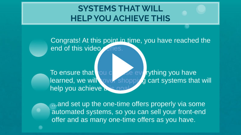 Congrats! At this point in time, you have reached the end of this video series. To ensure that you can use everything you have learned, we will cover shopping cart systems that will help you achieve this goal and set up the one-time offers properly via some automated systems, so you can sell your front-end offer and as many one-time offers as you have.