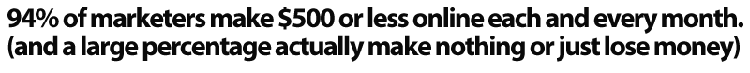 Well here's the cold, hard truth: Most online marketers simply end up experiencing confusion, they spend way too much on crap 'systems' that don't work, they make meagre or non existent profits and end up completely overwhelmed.