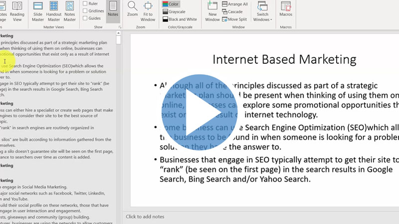 Slideshow view helps you look at your entire presentation at a glance. In this video, we'll show you how to record your PowerPoint presentation using the slideshow view.