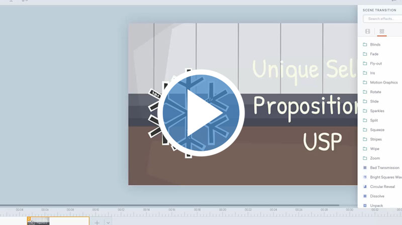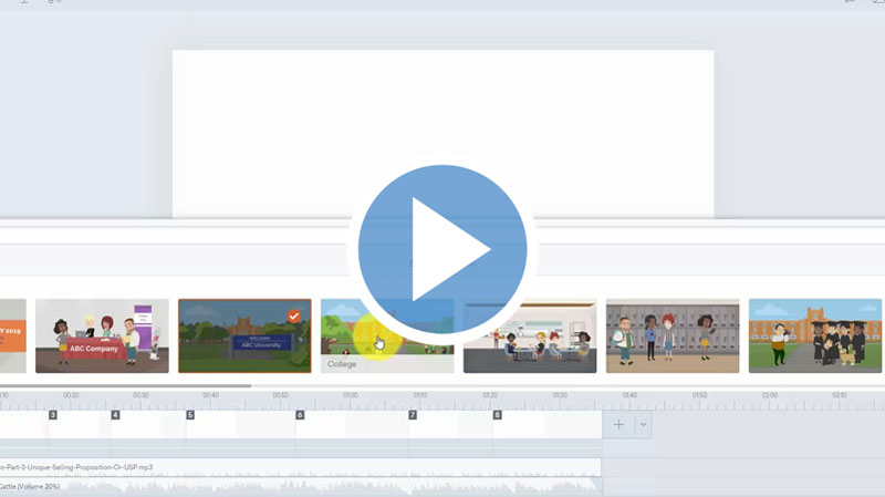 Vyond application opens up with a scene in a timeline. In this video, we'll show you how to adjust the timeline's appearance by customizing it using elements like music, sizing, etc.