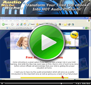 So...with that said, don't walk, but run. Grab your copy of 'Audio Niche Riches' now and take your business to the next level. Whether you technology phobe, or an experienced marketer, I guarantee that you'll gain some great information from this simple and easy to understand video series.