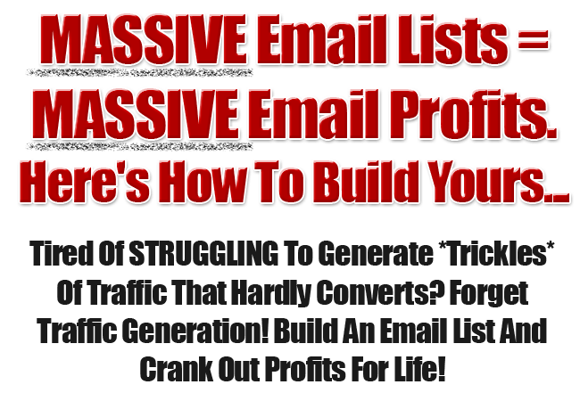 Building Big Email Lists Like The Big Dogs is a system that was designed from the ground up for a complete novice that has no experience generating big e-mail lists.