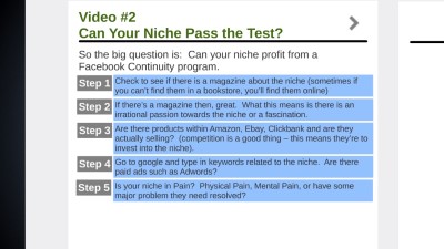 While there are thousands of different niches that can take advantage of a Facebook continuity program, you want to know for sure that yours passes the test. You don’t want to make the mistake of investing time into trying to sell your goods through Facebook only to find that you don’t get the results you were hoping for. Since this is one of the most common mistakes people make, this video will show you how to ensure that your niche will be profitable and worth your time. The test is quick and easy with practical application; it should take no longer than 10 minutes.