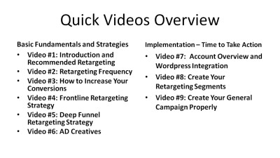 Are you excited about using retargeting marketing for your business? In this video, you will be given a quick overview of the course. We’ll talk about the basic concepts of how retargeting works, and you will get to see the retargeting network that we recommend.