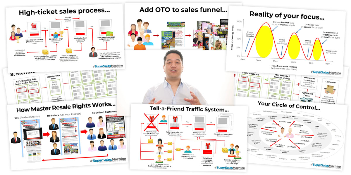 A referral link to the official super sales machine site to give away more free content which tags your leads with your Zaxaa, Clickbank and JVZoo IDs to maximum your commissions from our marketing efforts on all networks. (...valued at $997)