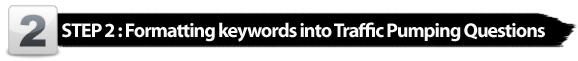This is what no one really knows how to do. In this step you will see how to construct traffic pumping keyword combinations formatted into powerful questions designed specifically to siphon massive traffic fast!