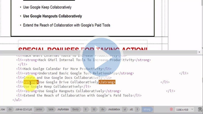 Knowing how to manipulate certain aspects of the font on a sales page can help you to emphasize certain elements. In this video, you will learn how to find the elements in the code and adjust them to your preference.