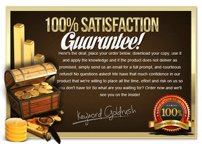 With nearly 2 hours worth of A-Z, step by step video tutorials, and accompanying transcripts, Keyword Goldrush is engineered to get you the highly profitable free organic traffic you desire and DESERVE...