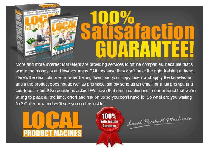 You see having some or part of the pieces of the puzzle is just as good as having none of them. Without complete knowledge you're only kicking yourself and wasting both your time and money. Local Product Machines puts you on the right track to starting your business. Learn to walk before you run and I can guarantee you'll do very well!