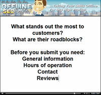 Remember that some Offline Businesses will live in the dinosaur age of marketing, so they do need some convincing. So when explaining to them what they need, it has to be very very simple, yet hit their hot spots, so they realize why it is important. You'll learn the basic tools they need to get started. Once you have these in hand, you can move on to videos 3, 4, 5, and 6.