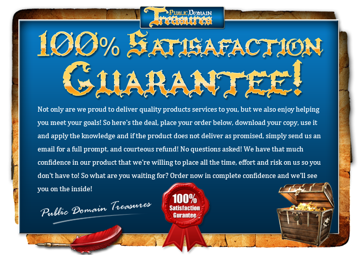 You have absolutely NOTHING to lose but ALL to gain! So act now, place your order via our secure server even if it's 3:00 AM. After your online purchase, you can download the entire Public Domain Treasures course instantly, and learn how to tap into this powerful method as used by the big players of marketing... online and offline!
