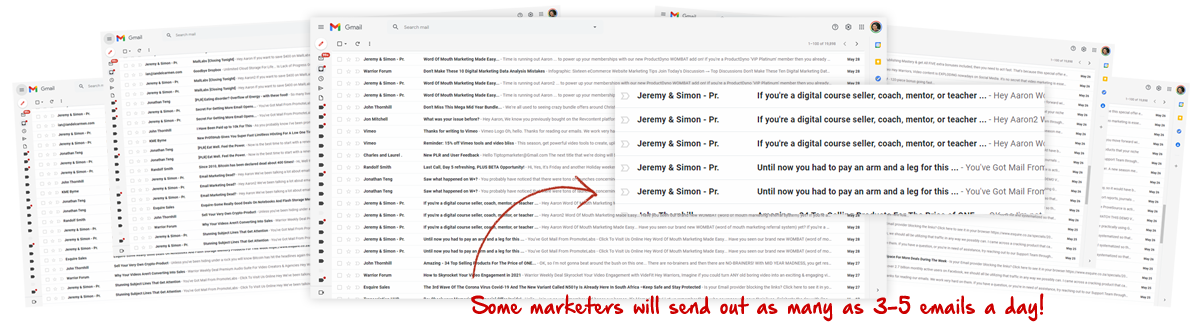 These emails will NEVER stop coming because every email they send out makes money... Money as an affiliate and money as a product creator ...and people never stop buying because these guys know how to communicate to their followers.
