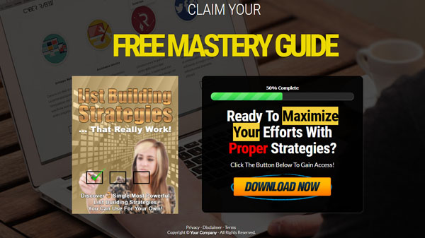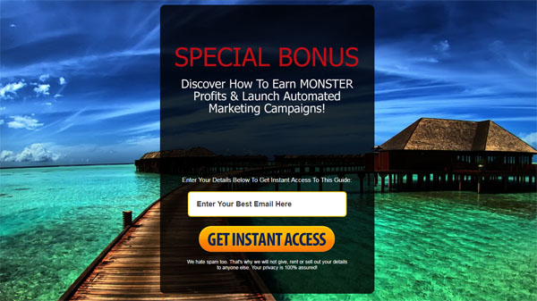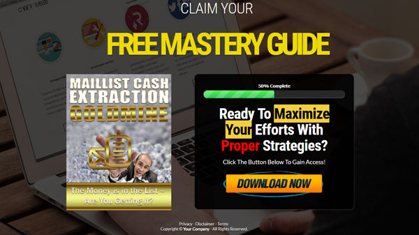 FAST CASH IDEA #4: Give-away a sample report/eBook/video to build your list! - Use the squeeze page provided to hand out preview teaser copy to your visitors in exchange for their email. Now you'll pre-sell your prospects for your main offer and open the gates to sell high-ticket products further down the line.