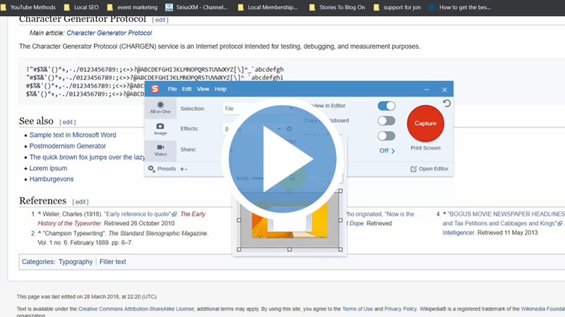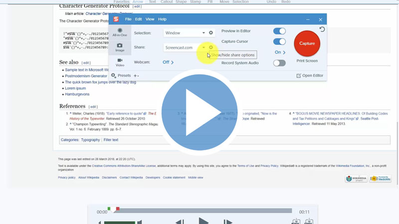 In this video, you will learn how to capture an entire window, sections, full screen or the scrolling window using the selection, effect and share box.