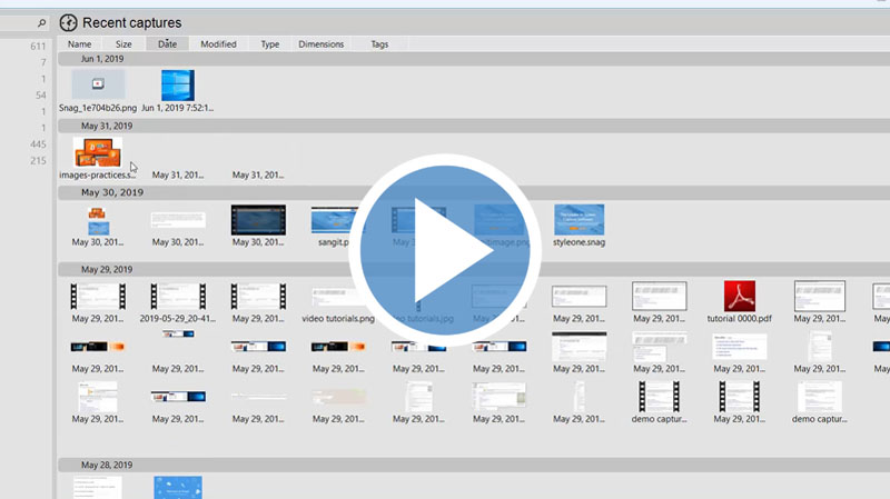 Snagit organizes and arranges all captures that you have done with the program even in previous versions. In this video, we'll show you how to access your captured images, videos, animated GIFs related tothe Snagit editor library.