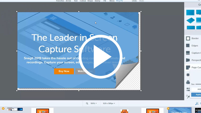 Snagit makes it easier and intuitive to capture images or record videos. In this video, we will introduce you to some of the functions you can perform on your image or video using Snagit.