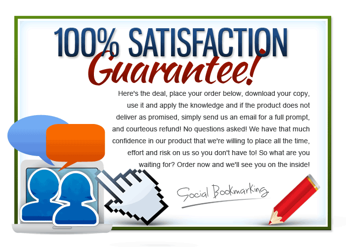 When you purchase the Social Bookmarking Backlinks program you will have a full 60 days to review the product and ensure your satisfaction. I am 100% confident you will be absolutely delighted with everything you will learn from this high quality video training. You are covered by my iron clad, no quibbles satisfaction policy which means if you are not totally delighted with this program you will get a rapid and courteous refund.