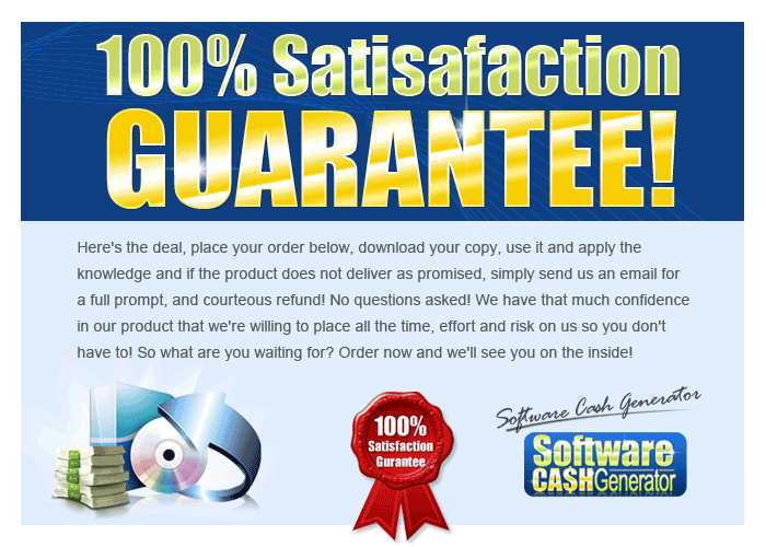 You see having some or part of the pieces of the puzzle is just as good as having none of them. Without complete knowledge you're only kicking yourself and wasting both your time and money. Software Cash Generator puts you on the right track to starting your business. Learn to walk before you run and I can guarantee you'll do very well!