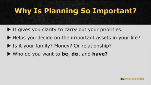 Having a plan is crucial as it gives you clarity to your priorities. To do this, on a piece of paper, list down everything you want to be, do and have. Who do you want to be? What do you want to do? And what is it that you want to have? You may also list this down specifically for your business.