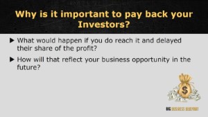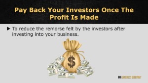 You should begin repaying your investors once profit has been made. This is to reduce the negative impact felt by your investors after investing in your business. What do you think would happen if you fail to reach the standards you’ve set up with your investors? What would happen if you do reach it and delayed their share of the profit? How will that reflect your business opportunity in the future?