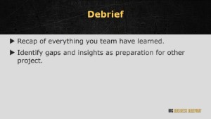 Debriefs are important after your projects to identify gaps and insights as preparation for other projects. So in this stage, it is essential that your project team prepare a list of gaps during the project.