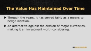 You might be wondering, why Gold? Why Silver? Why not Jade, Ruby or Diamond? Let me show you a scenario. 25 years ago, you could get up to 3 pounds of 2 bread at 1USD. Now, you can’t even get 1 pound of bread for a dollar! Now, what is happening here? Has the price of bread gone up? Could it be that the value of money had gone down? What does this have to do with Gold and Silver Investment you ask? Because while all this is happening, Gold and Silver are increasing in value!