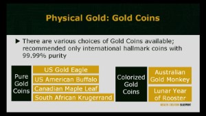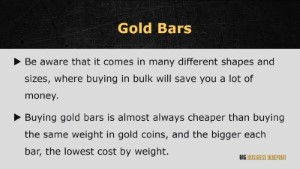 Now, let’s move on to gold investment techniques.There are several ways to invest in gold: Gold Coins (convenient and portable), Gold Bars (cheaper in bulk, even cheaper with the same weight bought with Gold Coins) and Exchange Traded Funds (ETFs).