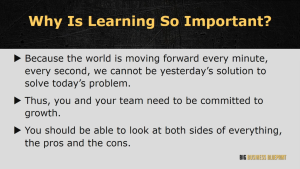 The only thing constant in this world is change and to keep up with that change and stay relevant is to learn. The world is moving forward every hour, every minute and every second therefore we cannot use yesterday’s solution to solve today’s problem.