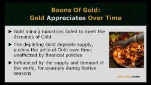 What makes a gold? Gold has been widely used before the existents of paper money (fiat money). Research stated that its usage was detected for over 3000 years; how can it retain its appreciated value? Gold has maintained its value through time. People perceive gold as a way to preserve their wealth from one generation to the next.