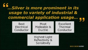 Just like Gold, Silver will not be one of the precious metals around without its flexible characteristic and its hyped origin. Despite the undervalued appreciation Silver receives, in reality, Silver is more versatile in terms of its usage to variety of industrial and commercial application usage unlike Gold.