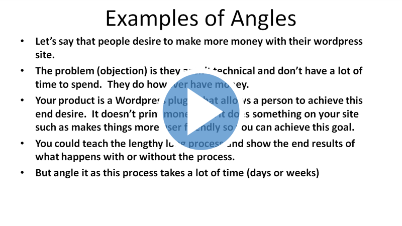 So what is your sales webinar angle? The angle is how you are going to ultimately sell your product or service in your sales webinar. There are many different types of angles that you can use to your advantage and we will be covering these in this specific video.